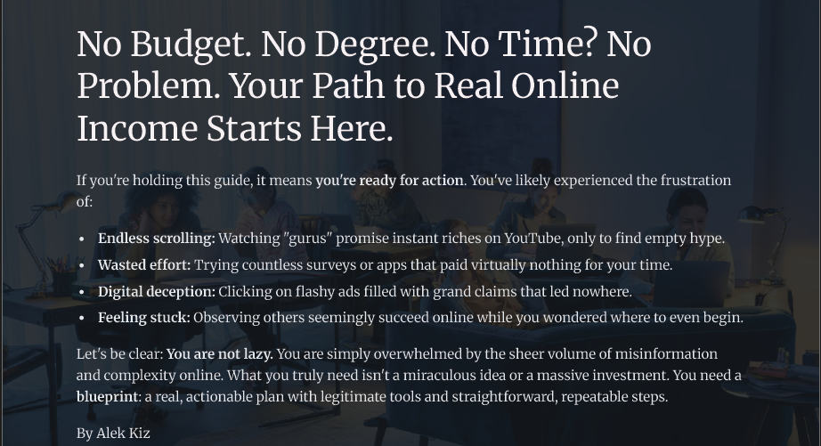 Take a sneak peek inside the Digital Creator Masterclass and discover proven strategies to start making money online from zero. This chapter gives you actionable steps and clear direction to launch your project confidently — no fluff, just real value.