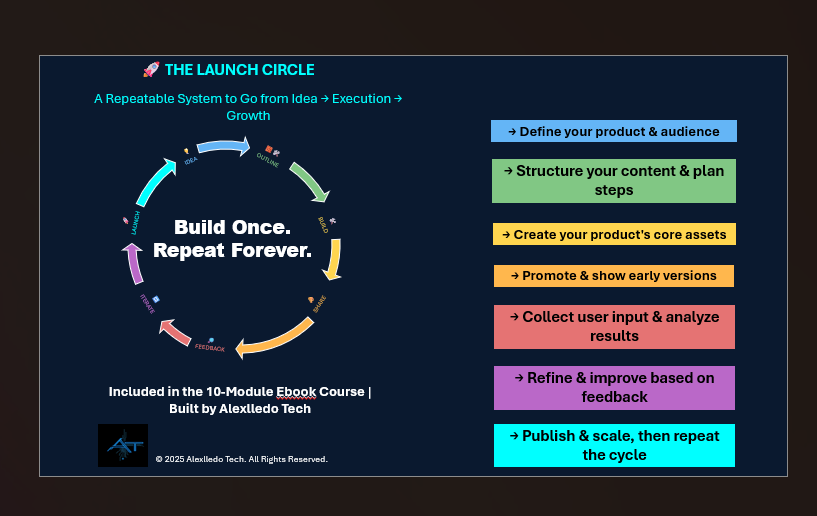 This is a battle-tested framework used by real creators to move from idea stuck in your head to live, launched, and growing. Whether you’re building a digital product, launching a service, or starting a brand—this course gives you the exact steps to do it without burnout, confusion, or getting lost in YouTube holes.